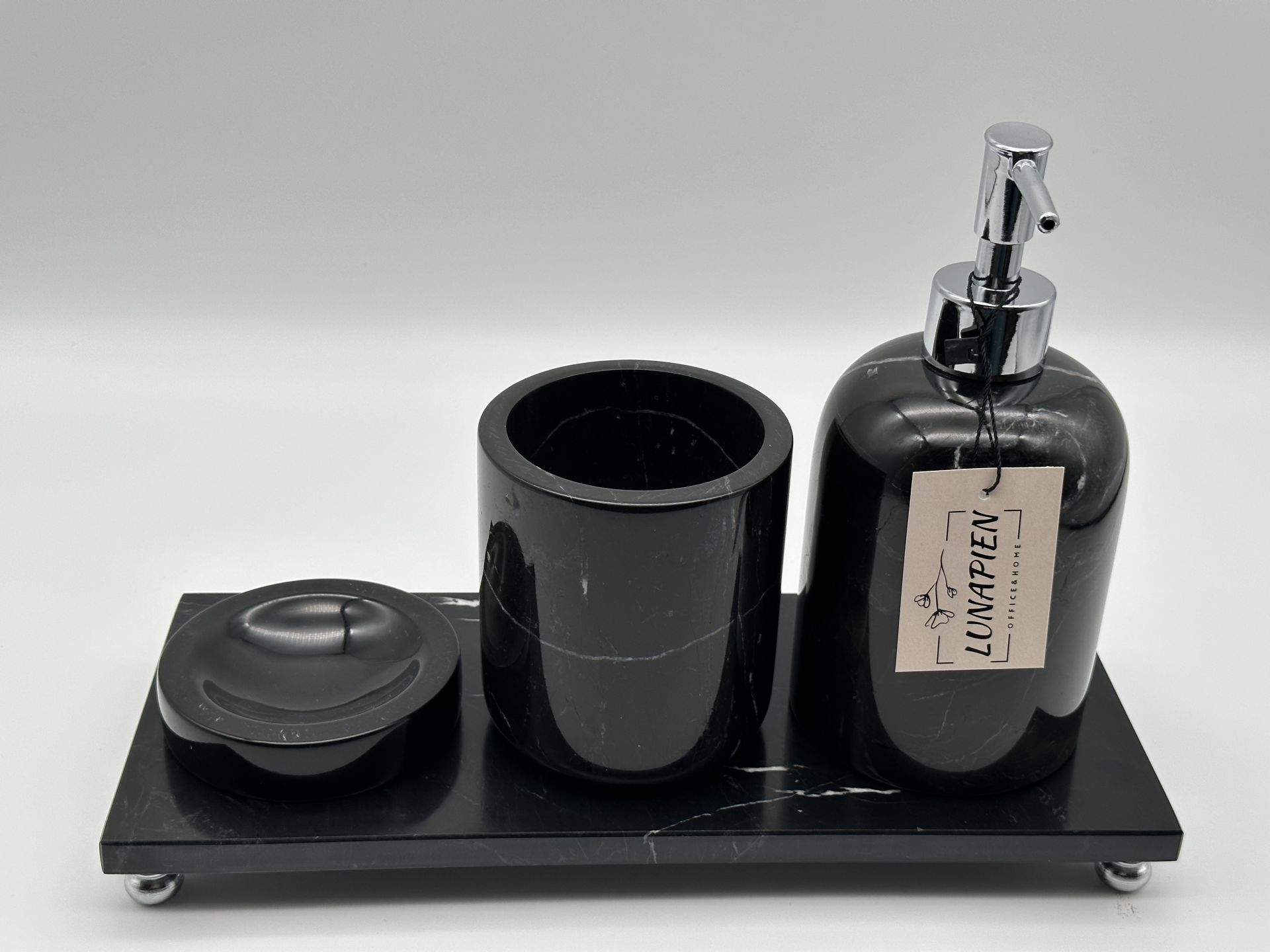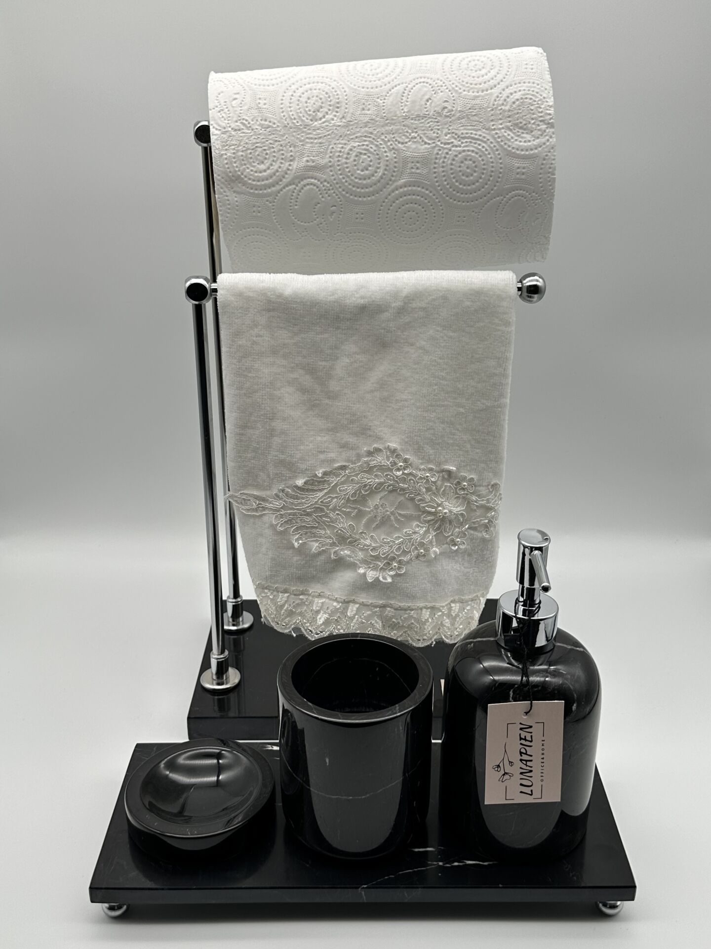 Siyah-Gümüş 4'lü Mermer Banyo Seti