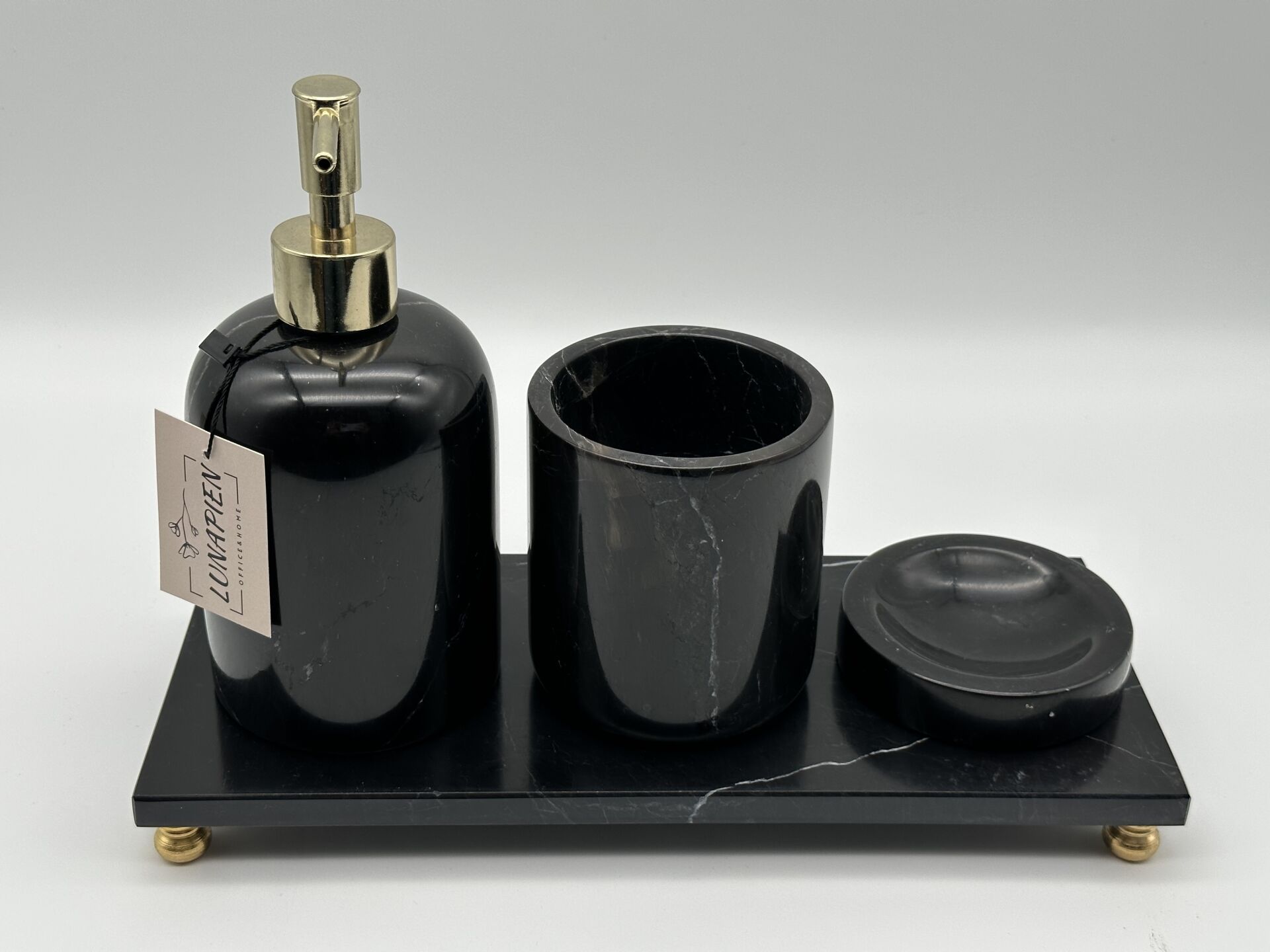 Siyah-Gold 4'lü Mermer Banyo Seti
