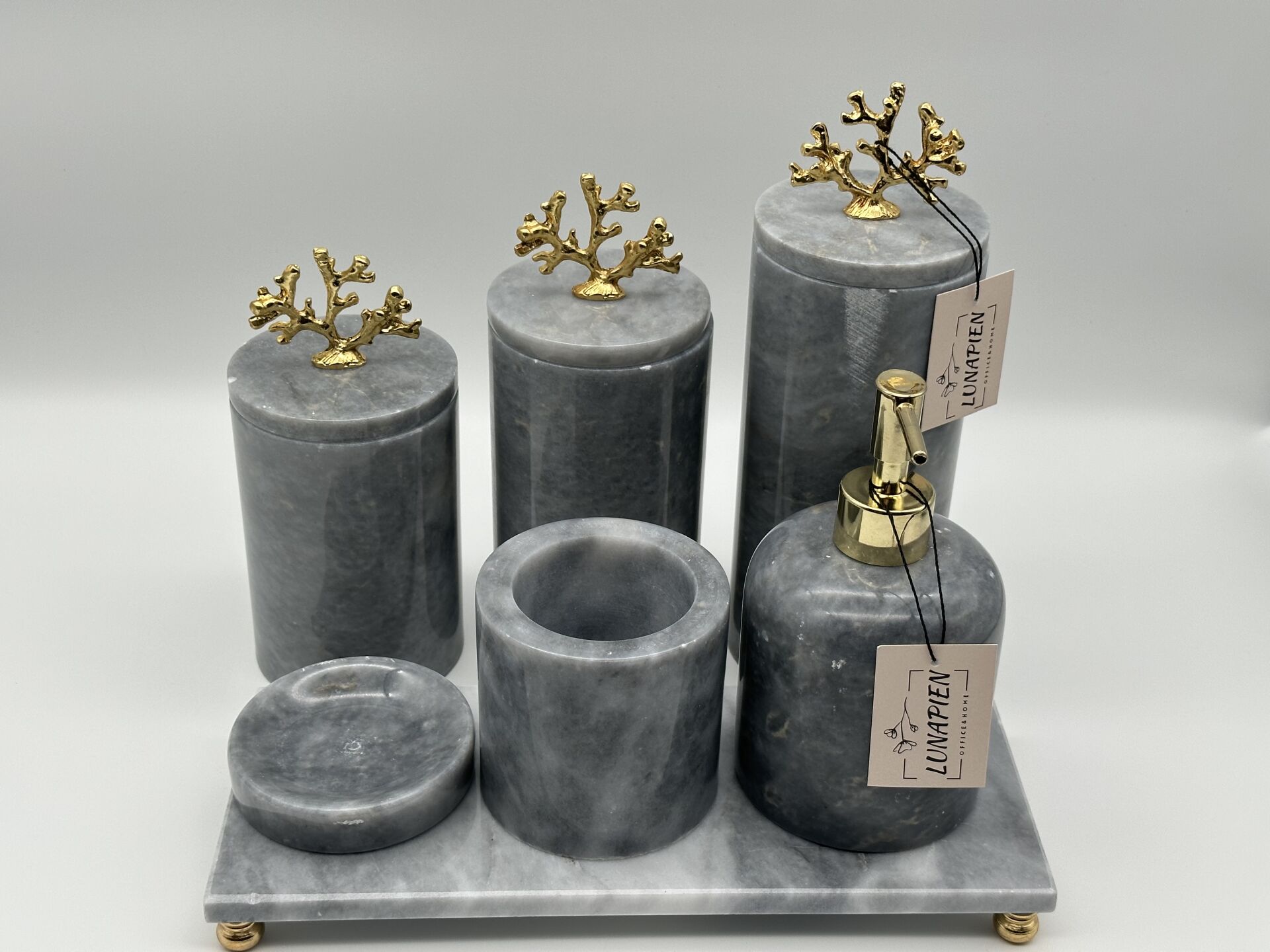 Gri-Gold 3'lü Mermer Kavanoz