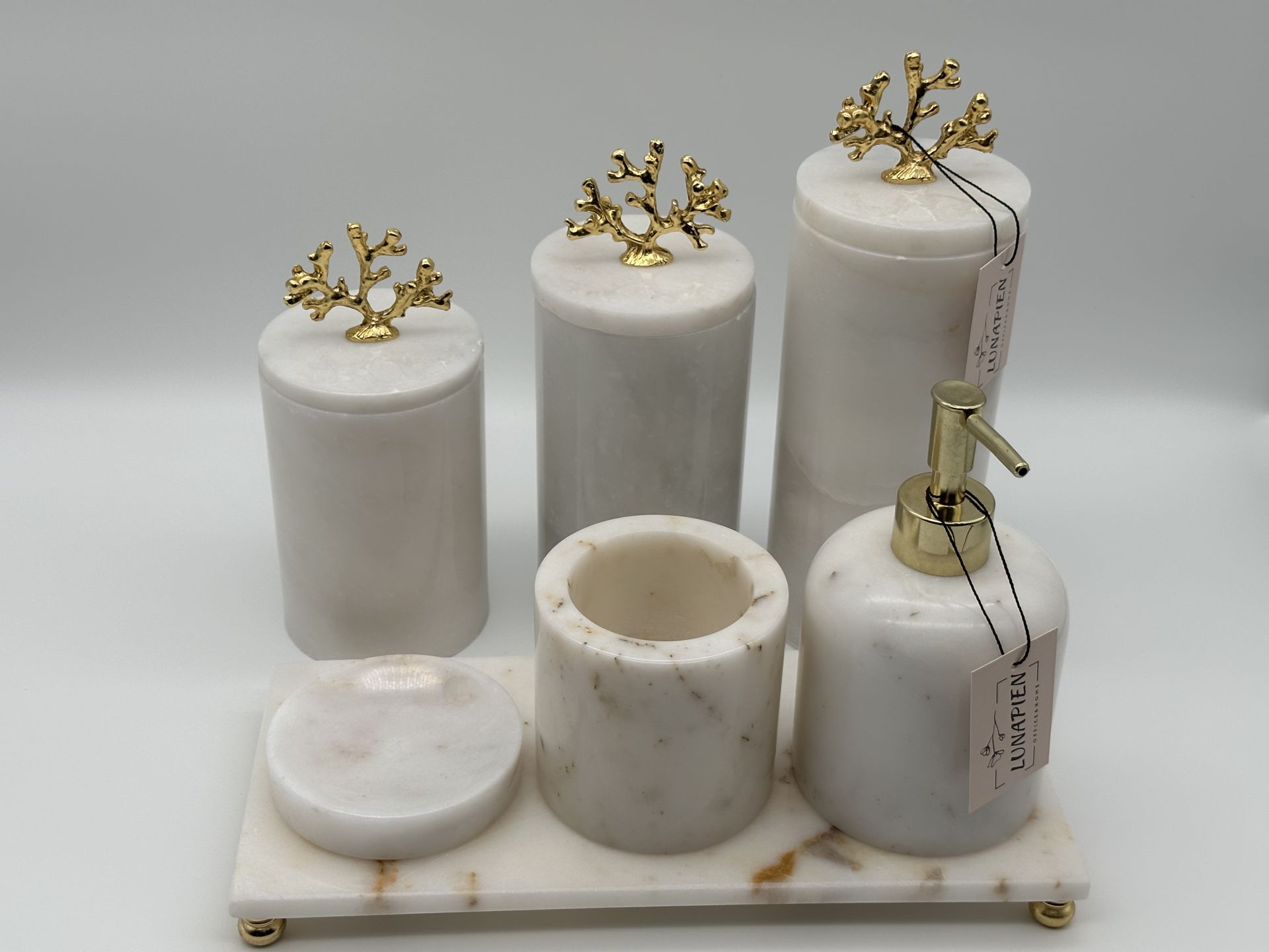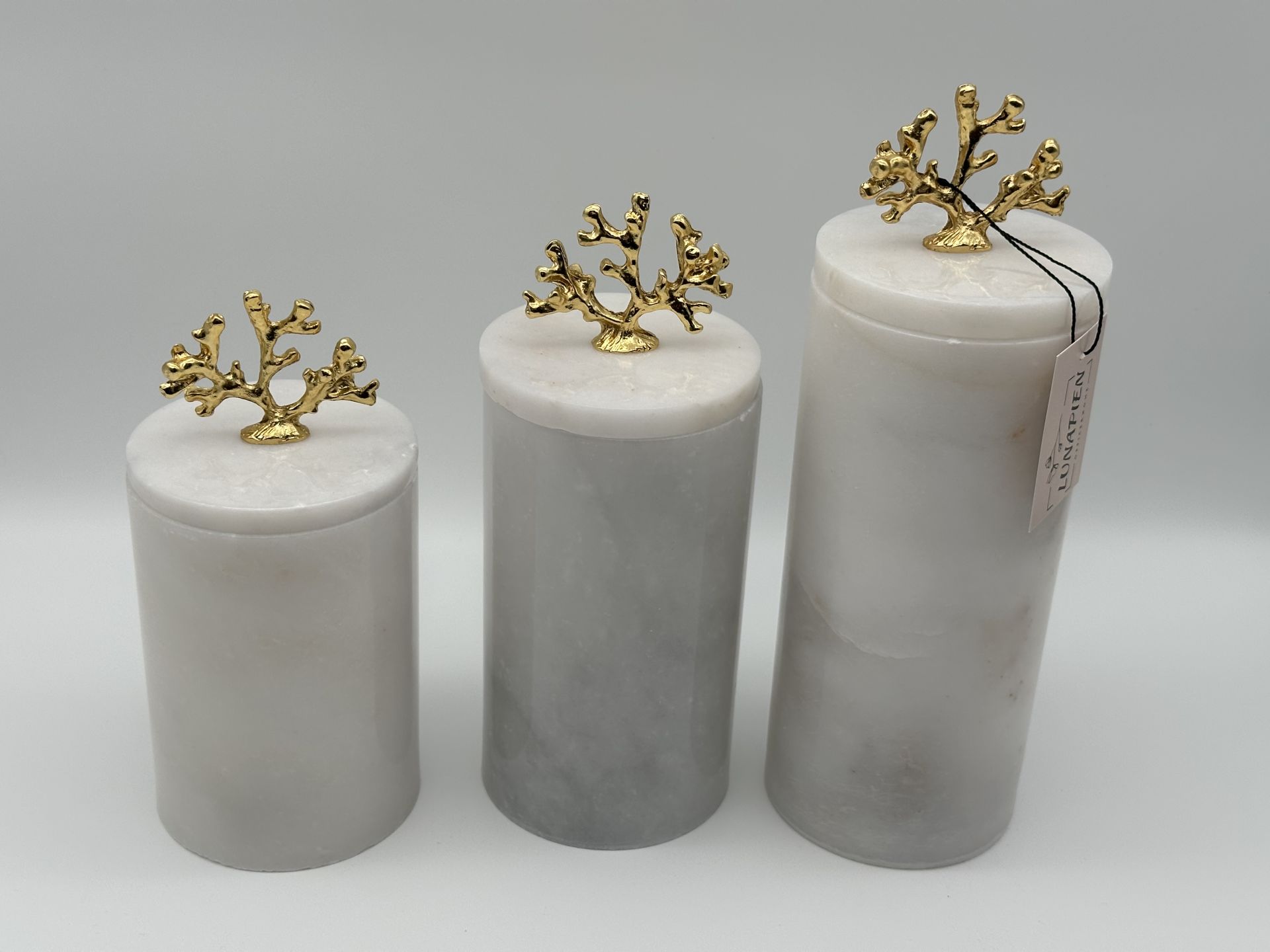 Beyaz-Gold 3'lü Mermer Kavanoz
