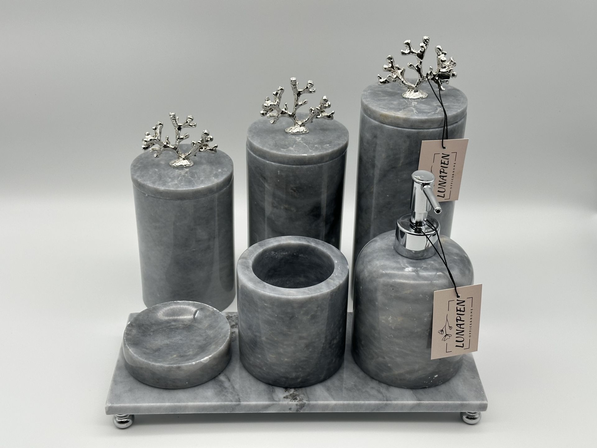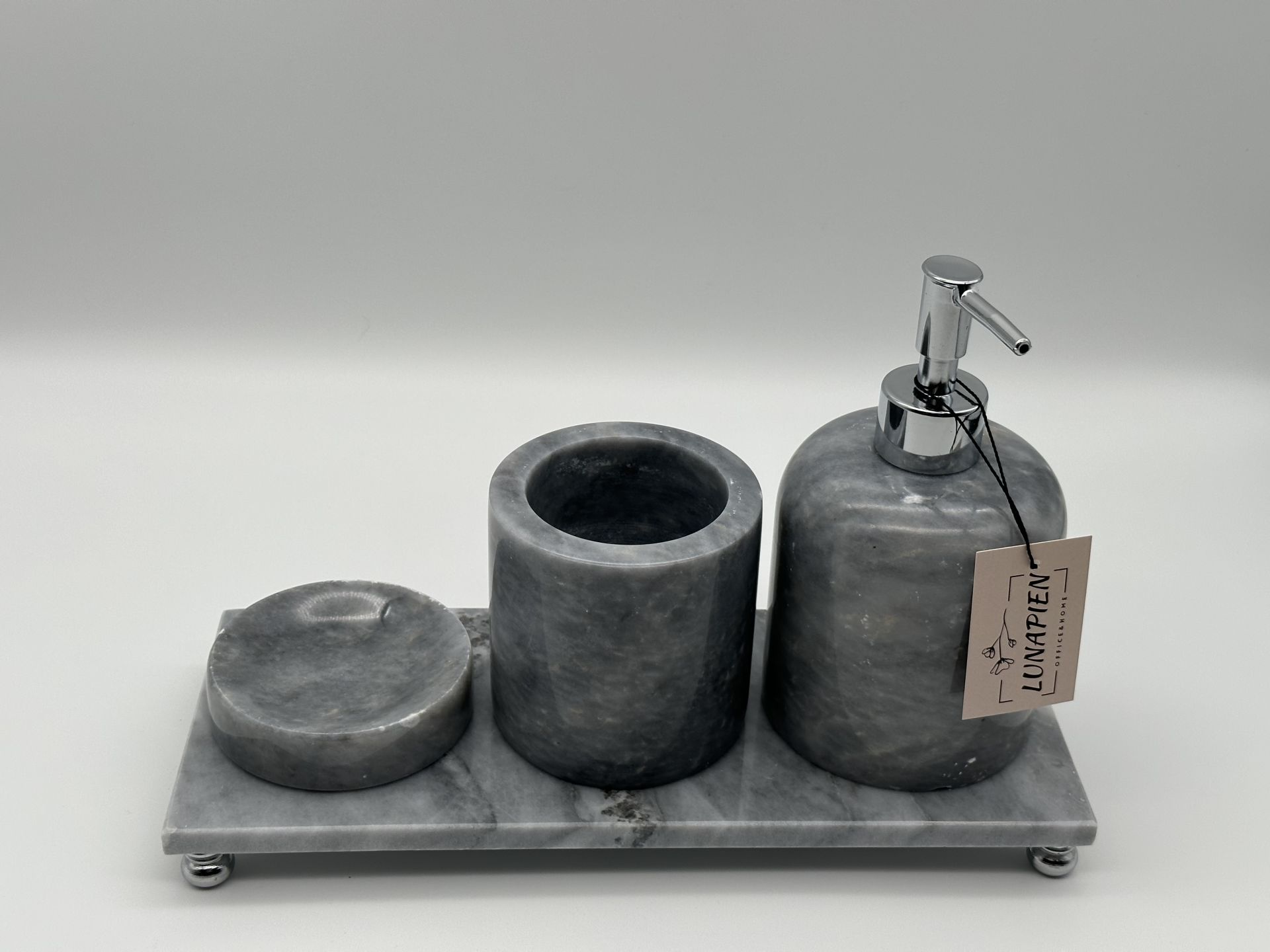 Gri-Gümüş 4'lü Mermer Banyo Seti