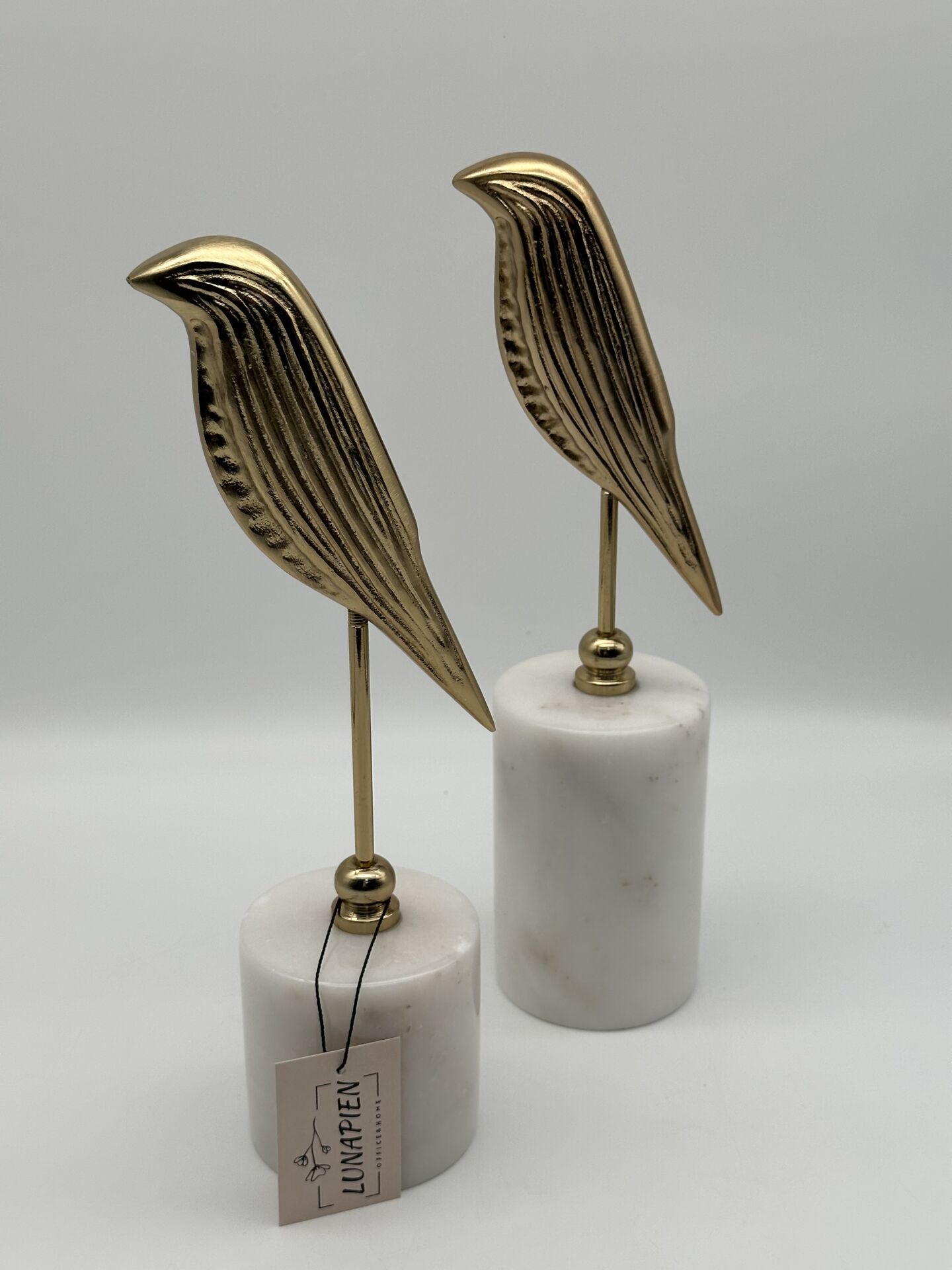 Gold-Beyaz Mermer 2'li Kuş Obje