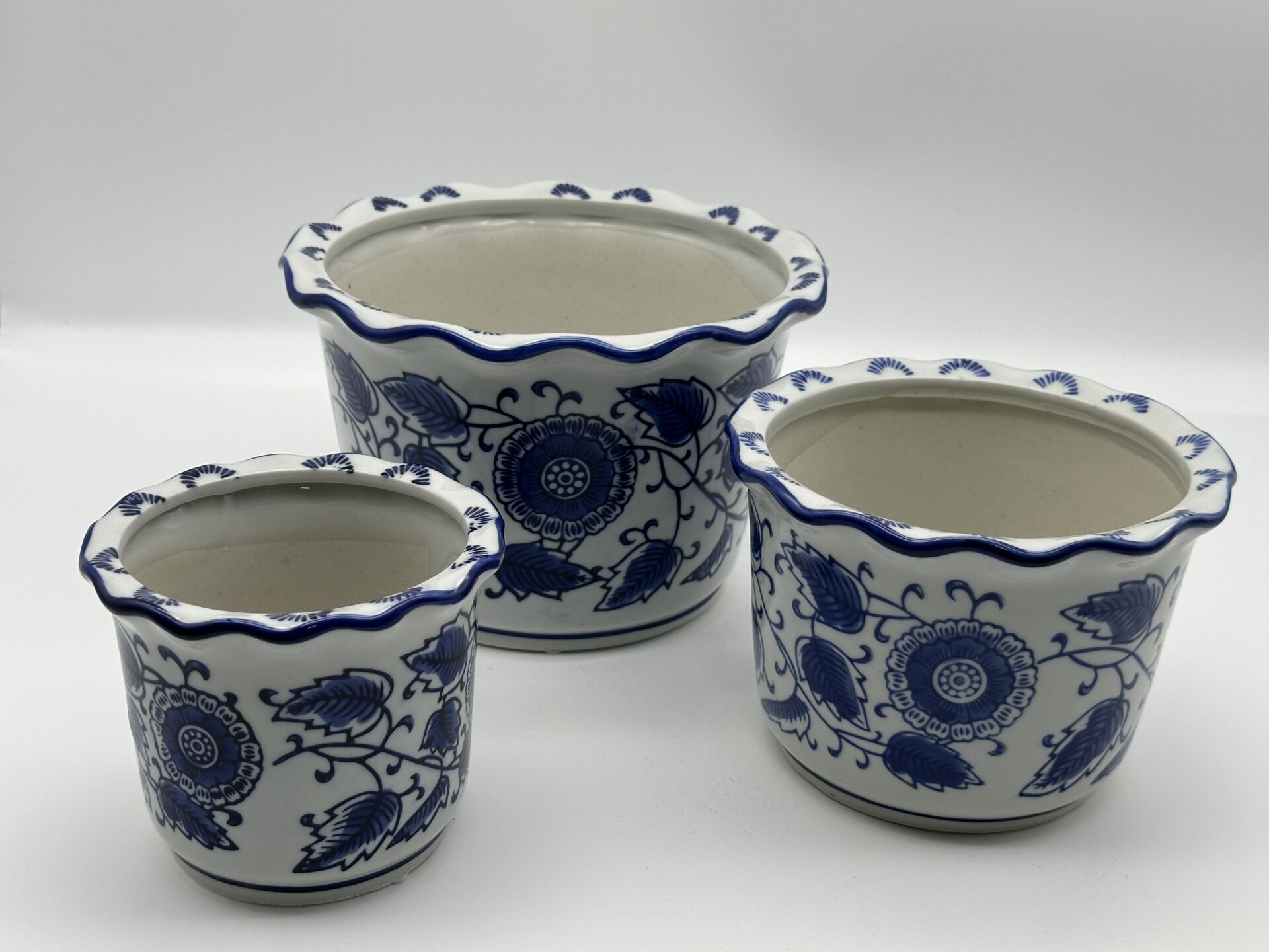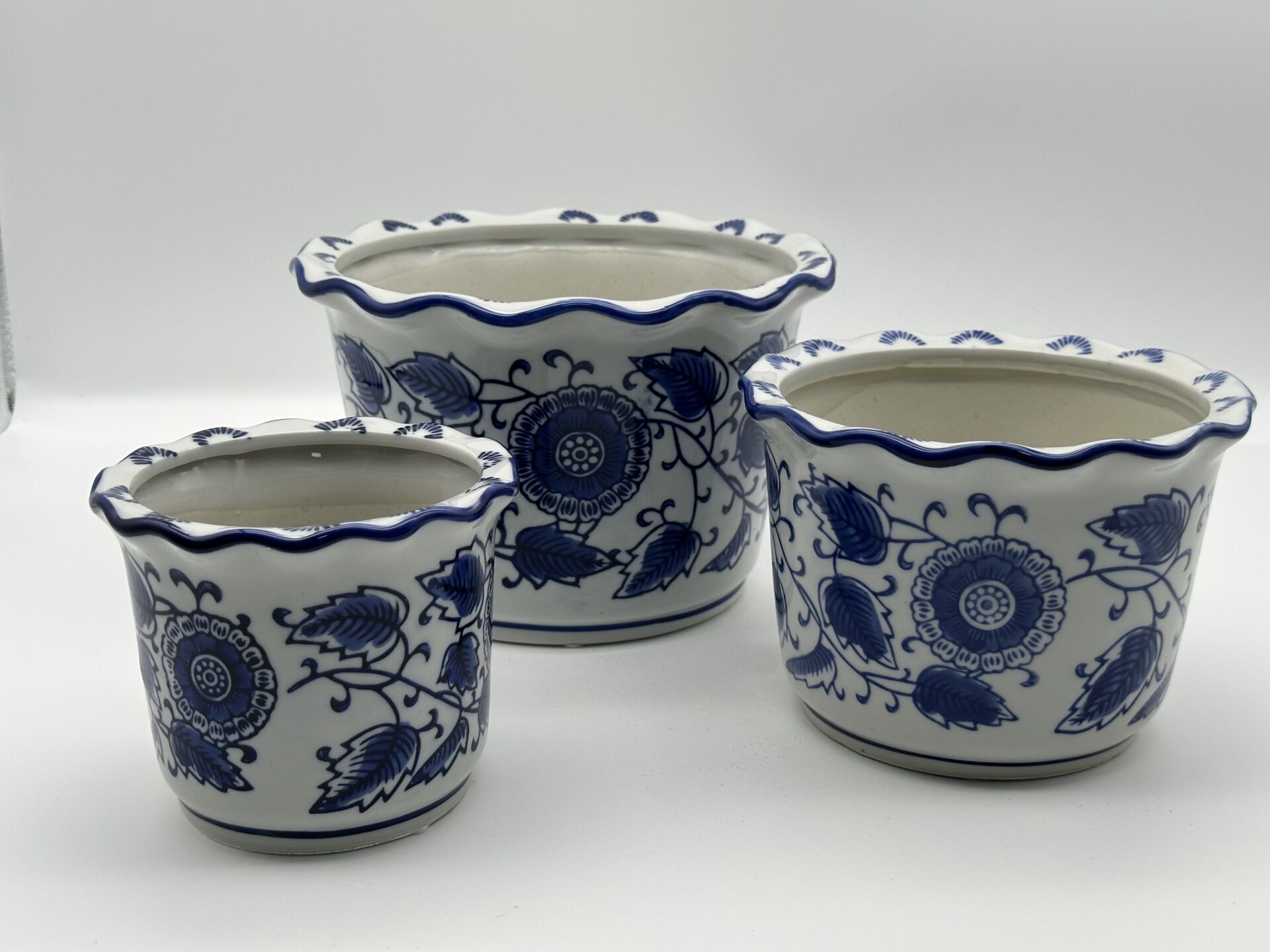 Mavi Desenli 3'lü Seramik Saksı