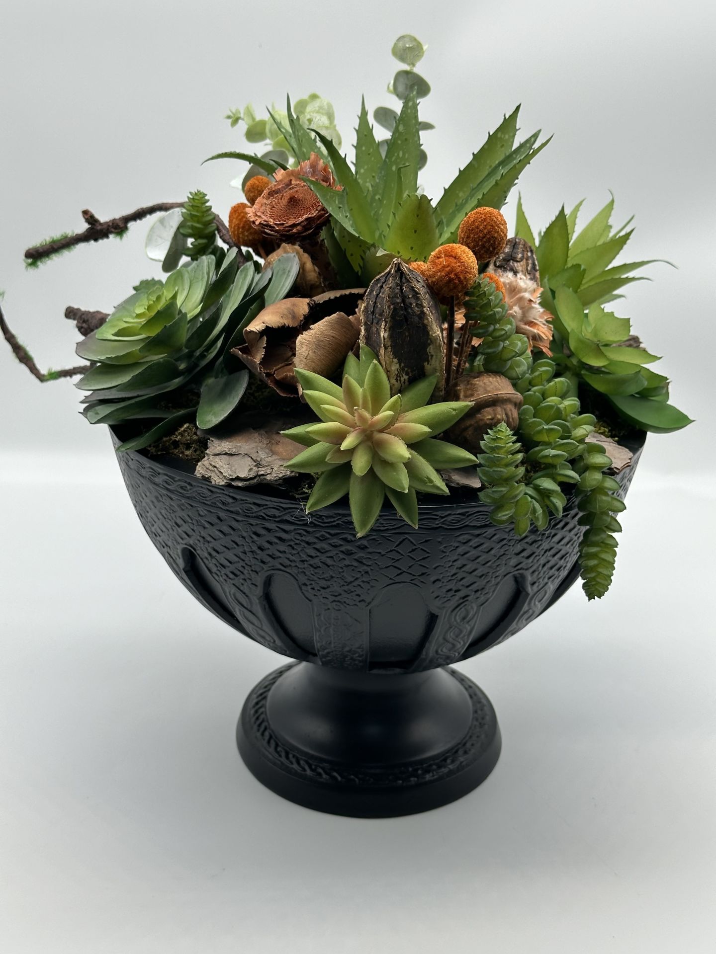 MAT SİYAH ÇİÇEKLİ SAKSI