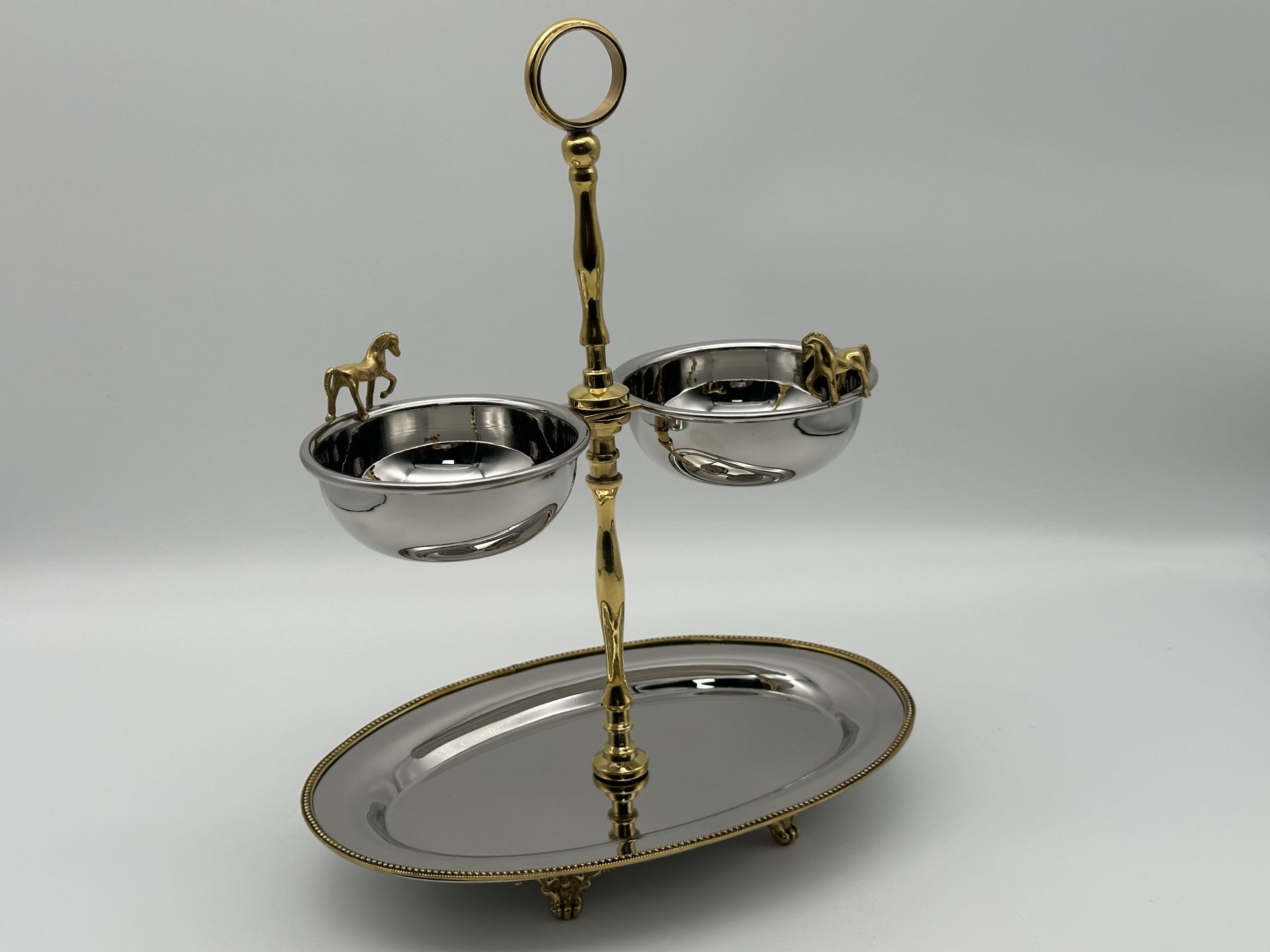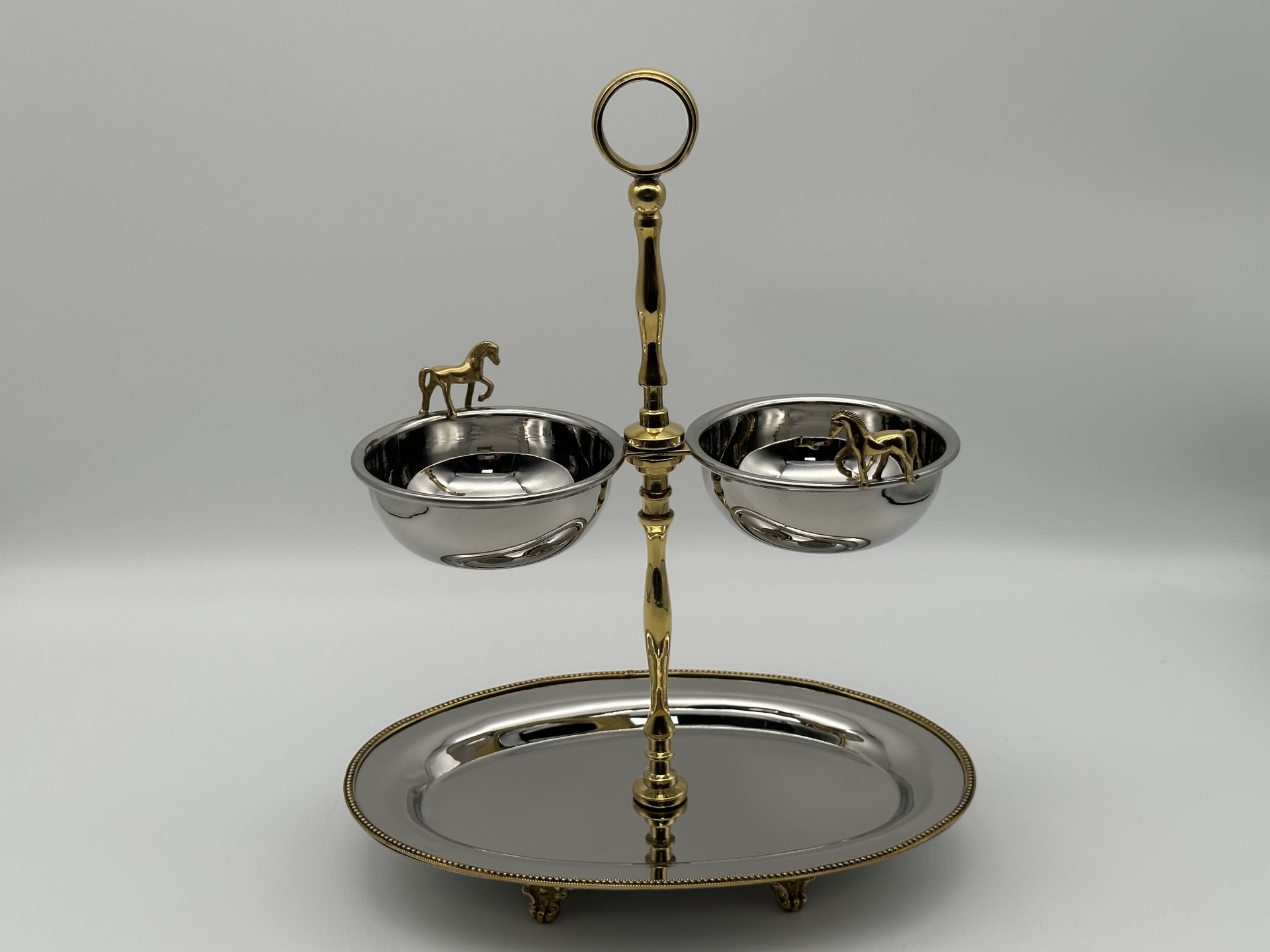 İtalyan Gümüş 2 Katlı Oval Atlı Sunumluk