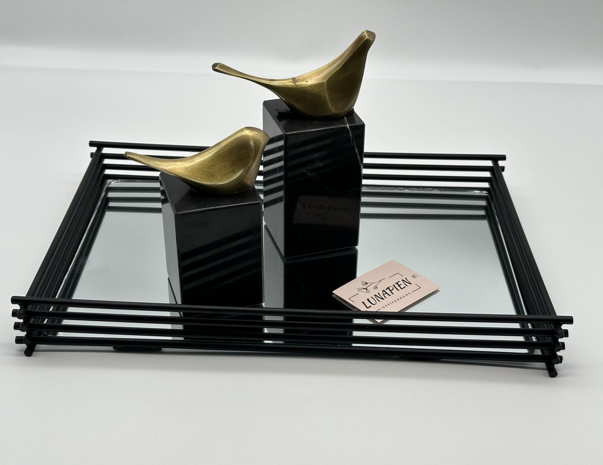 MERMER-PİRİNÇ DETAYLI 2'Lİ DEKORATİF KUŞ OBJE