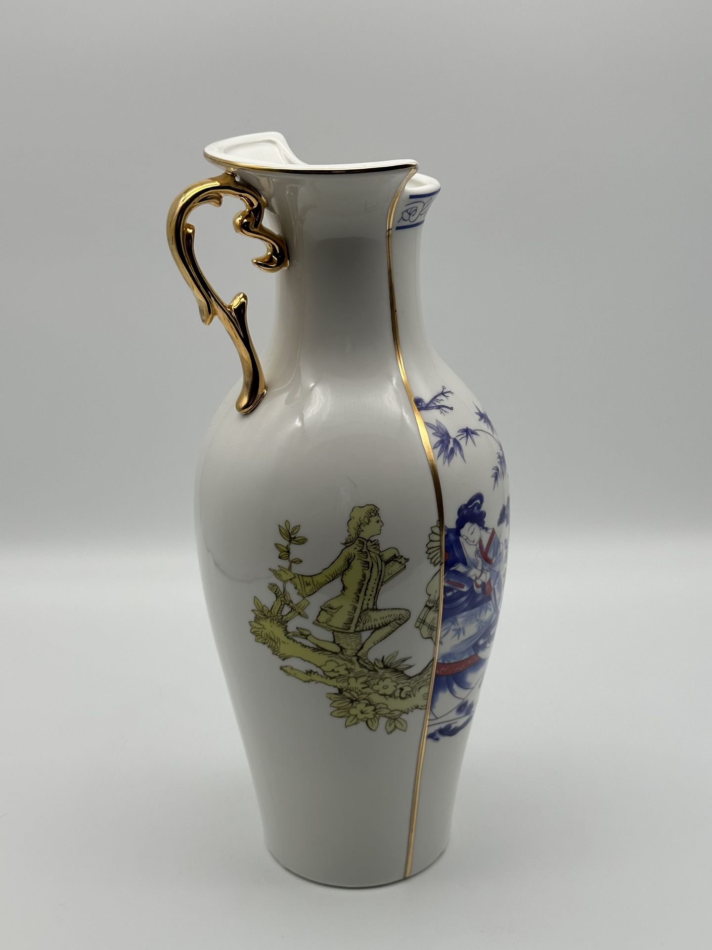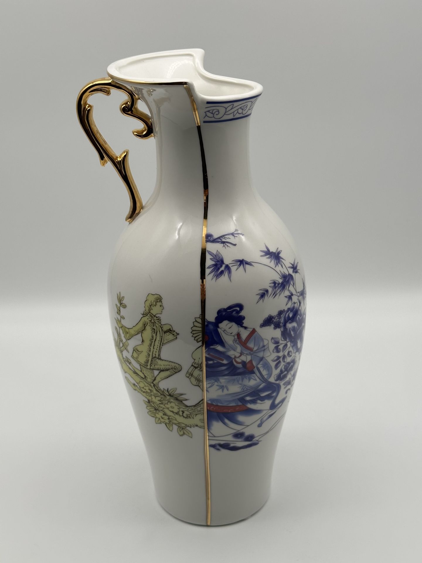 Mavi 2 Renkli Kulplu Seramik Vazo