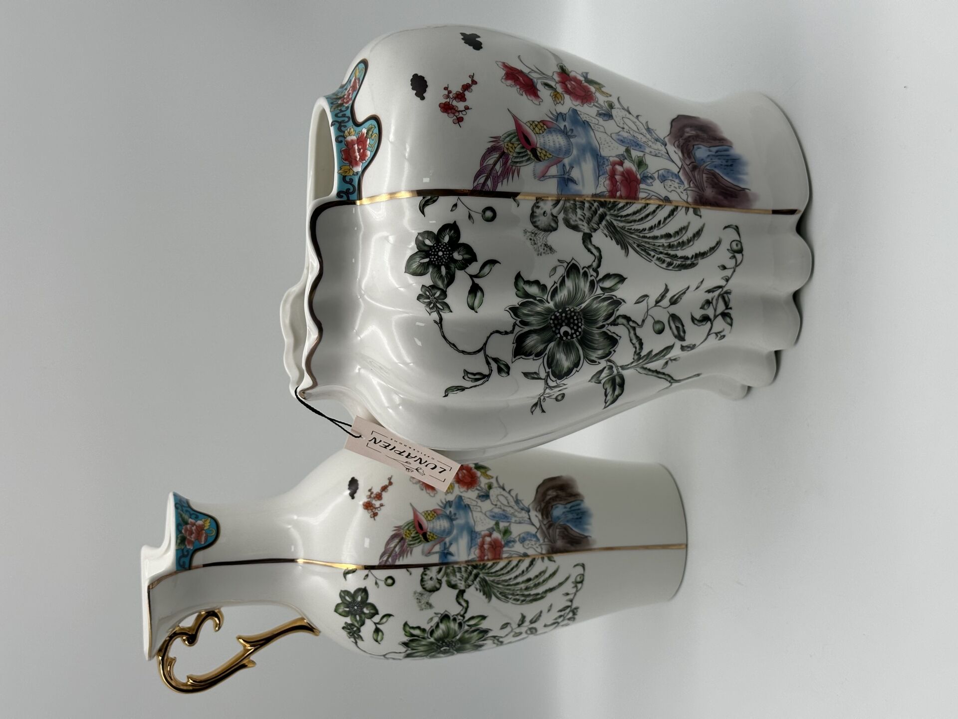 Turkuaz 2 Renkli Kulplu Seramik Vazo