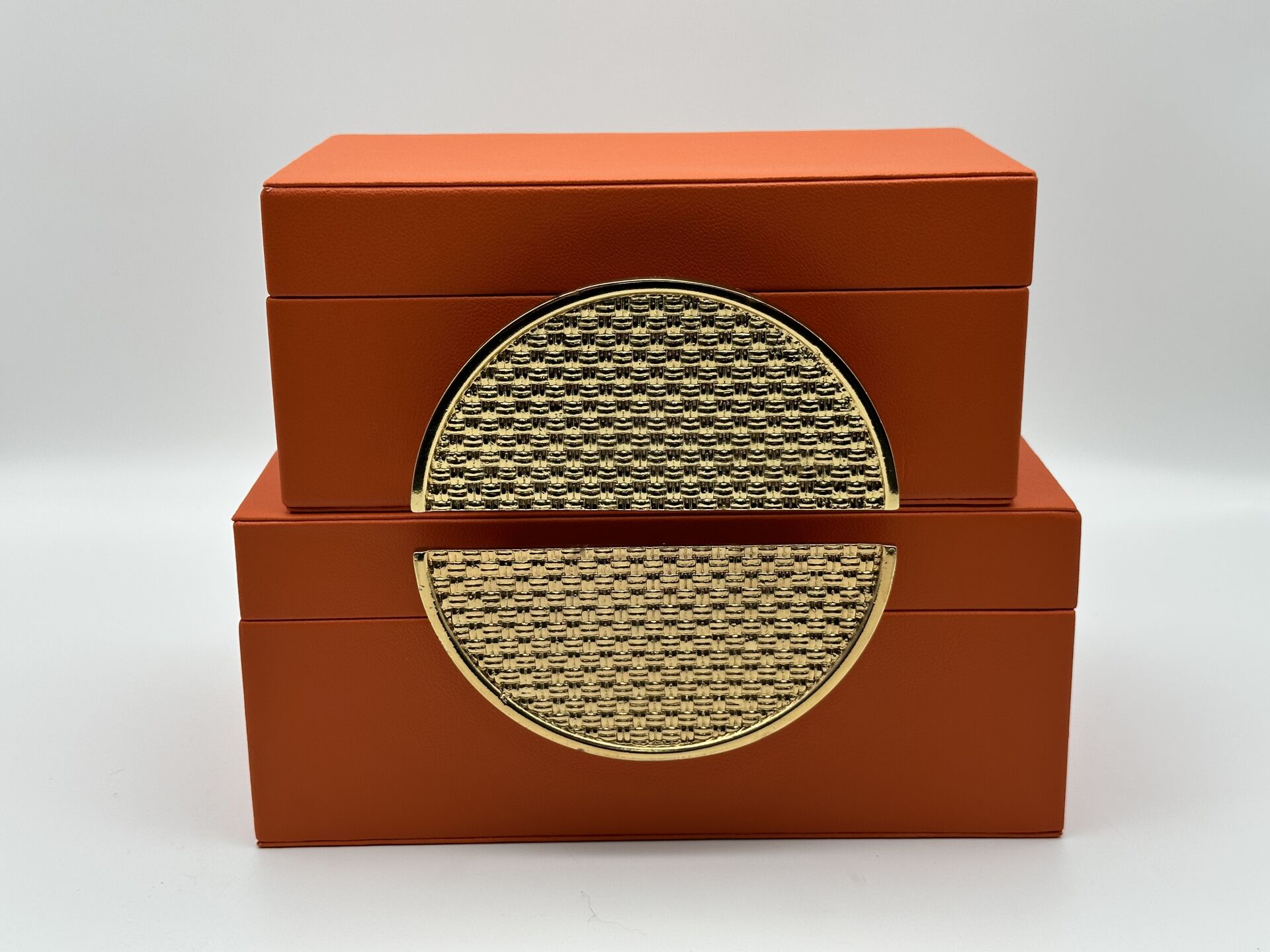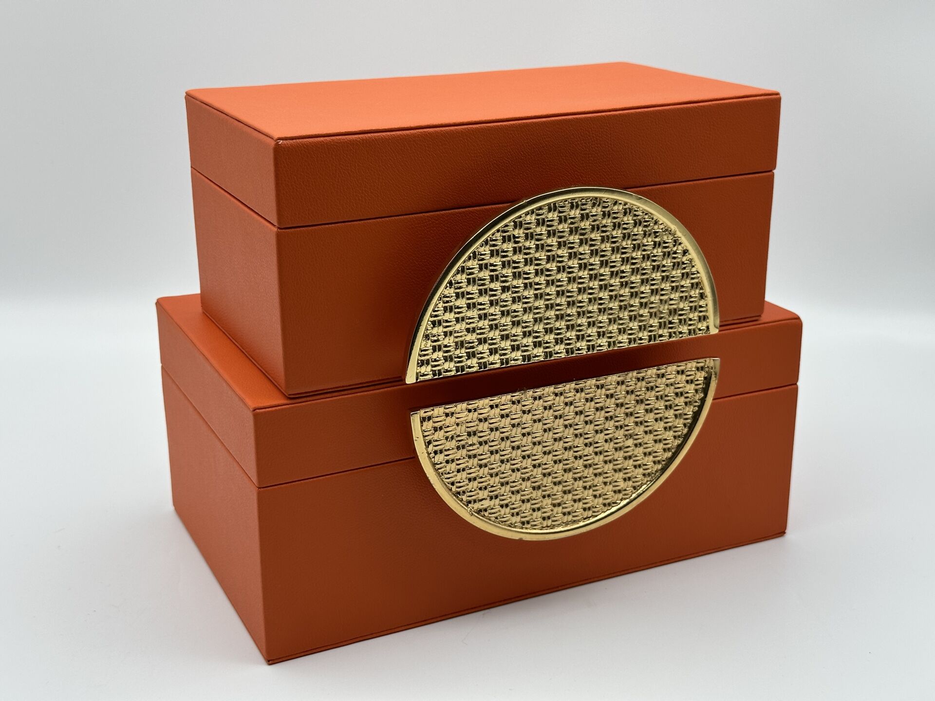 Turuncu Hasır Desen 2'li Deri Kutu