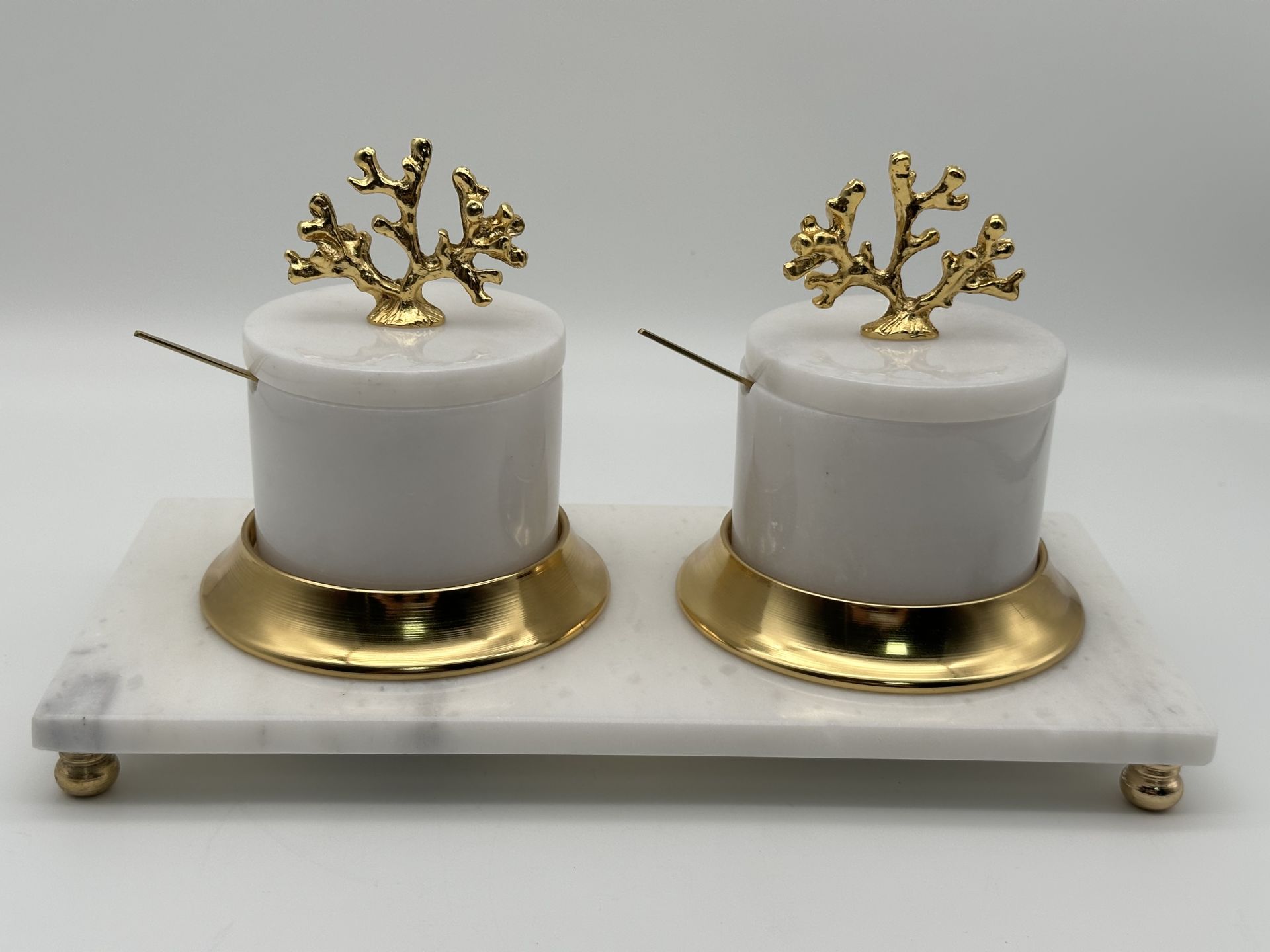 Beyaz Tepsili 2'li Mermer Baharatlık